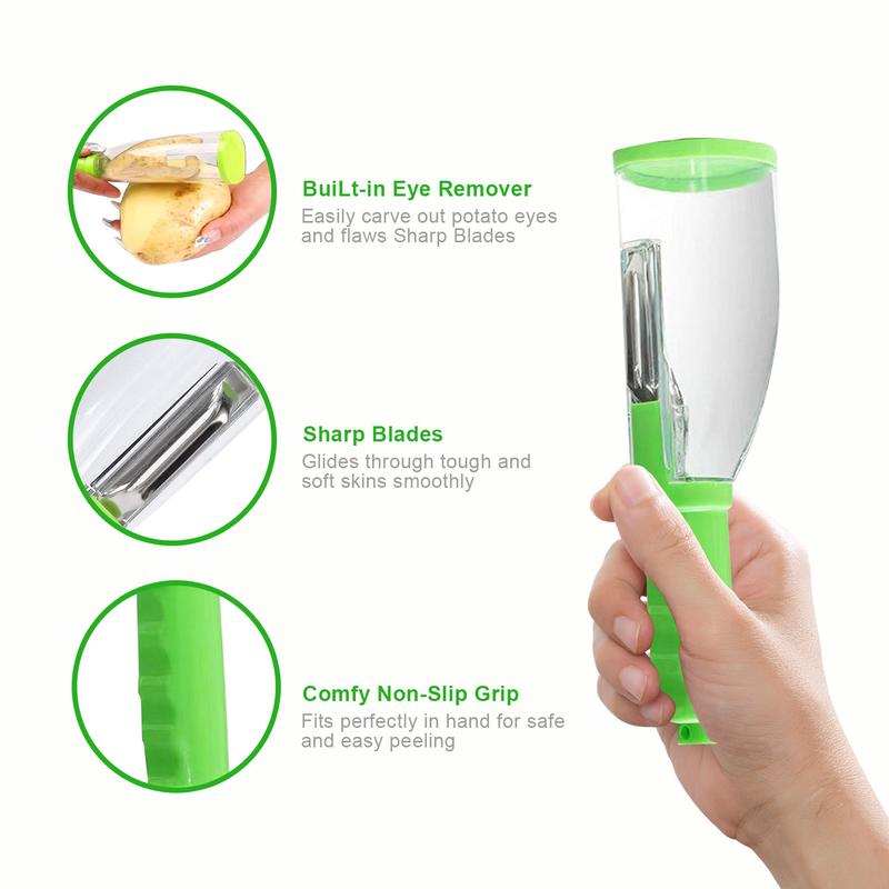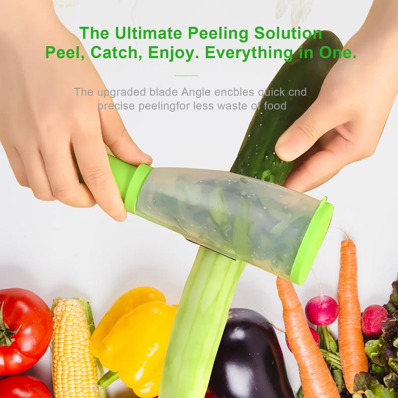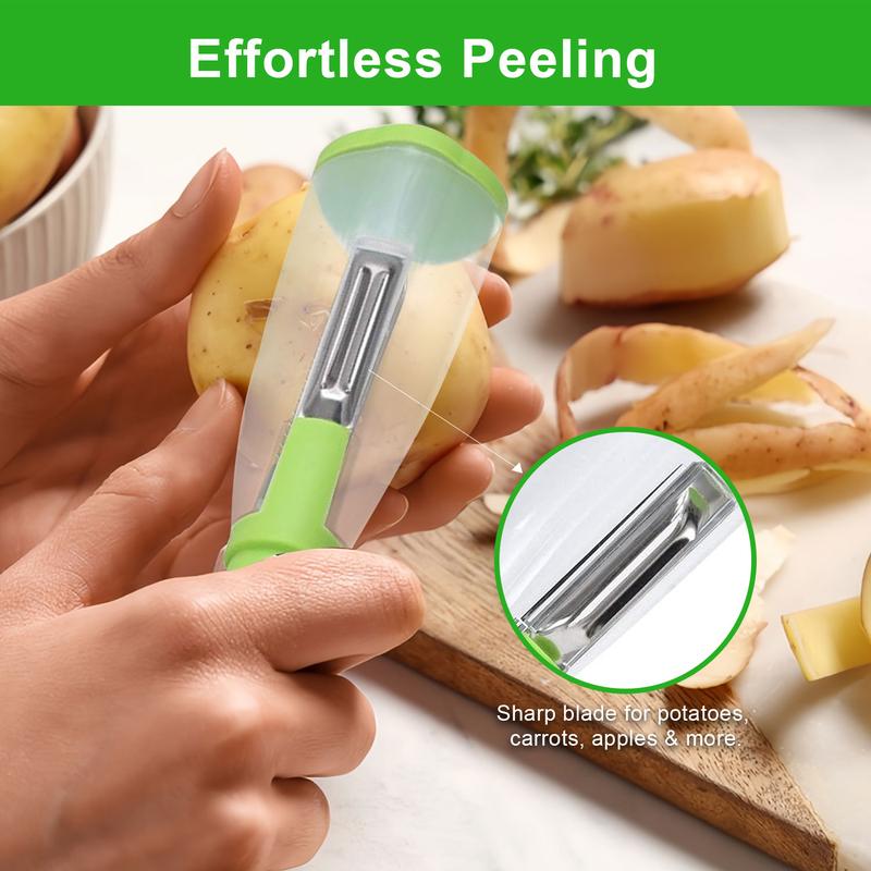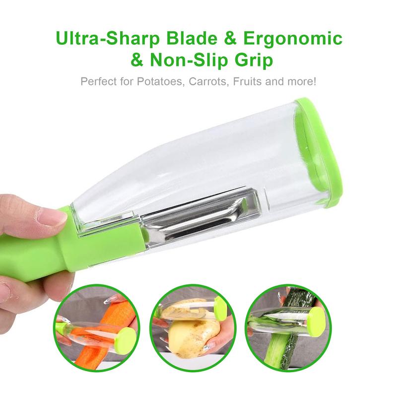 Multifunctional Peeler with Container Ergonomic Grip Surgical-Grade Stainless Steel Blade Effortless Peel Fruits Vegetables No Mess Kitchen Tool