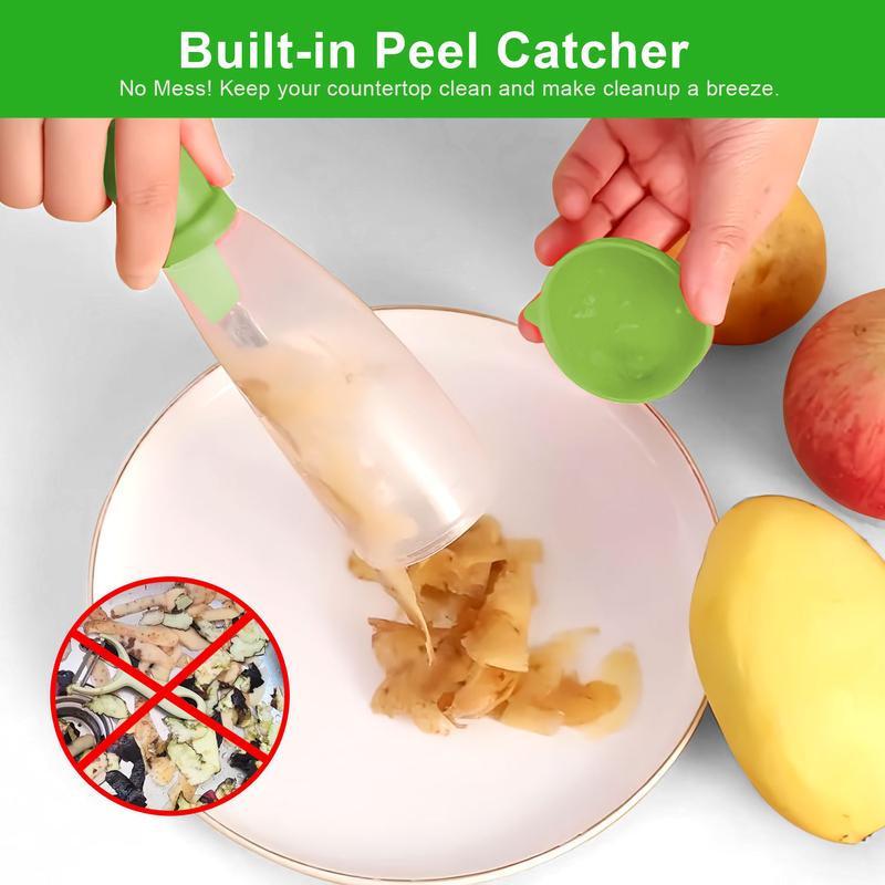 - Integrated Peel-Catching System: Attach the container and start peeling. Every bit of peel from potatoes, carrots, apples, and more is neatly collected.